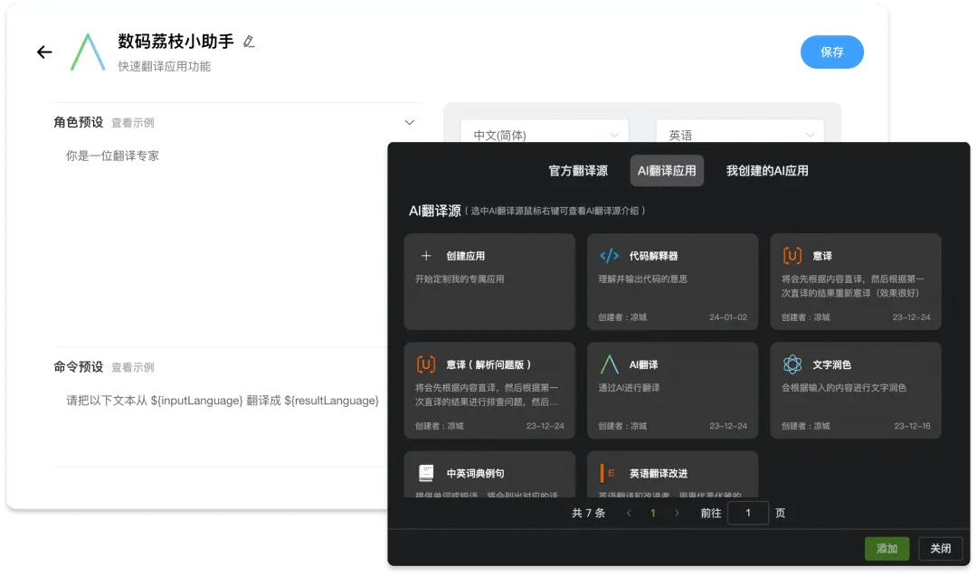 在 TTime 中,还支持为 AI 设置角色预设和命令预设,以更好地完成代码解释、文字润色、翻译改进等任务。