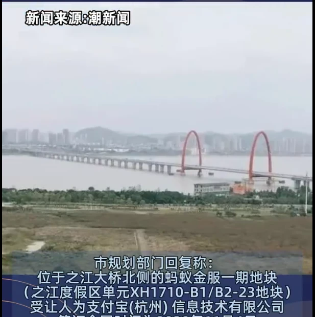 市规划部门在问政平台上解答热心市民的咨询时回复:位于之江大桥北侧的蚂蚁金服一期地块(之江度假区单元XH1710-B1/B2-23地块),受让人为支付宝(杭州) 信息技术有限公司,签订合同时间为2020年11月4日。企业已于2022年7月1日向杭州市规划和自然资源局申请终止合同。
