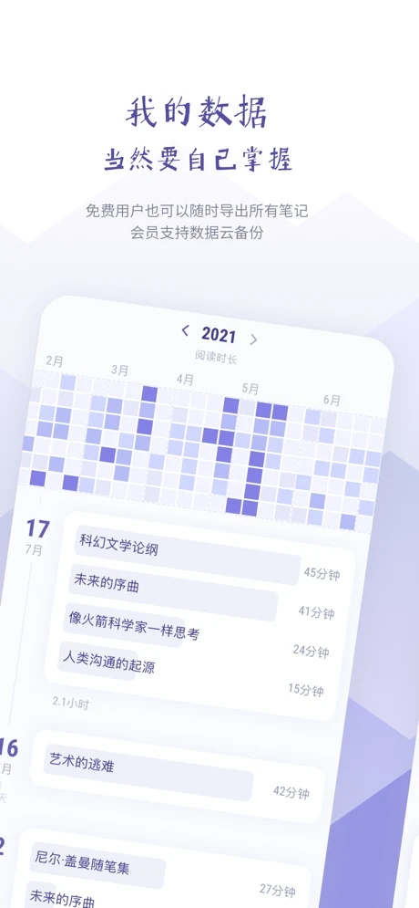 - 记录阅读时间,丰富的统计图表让你了解自己的阅读习惯